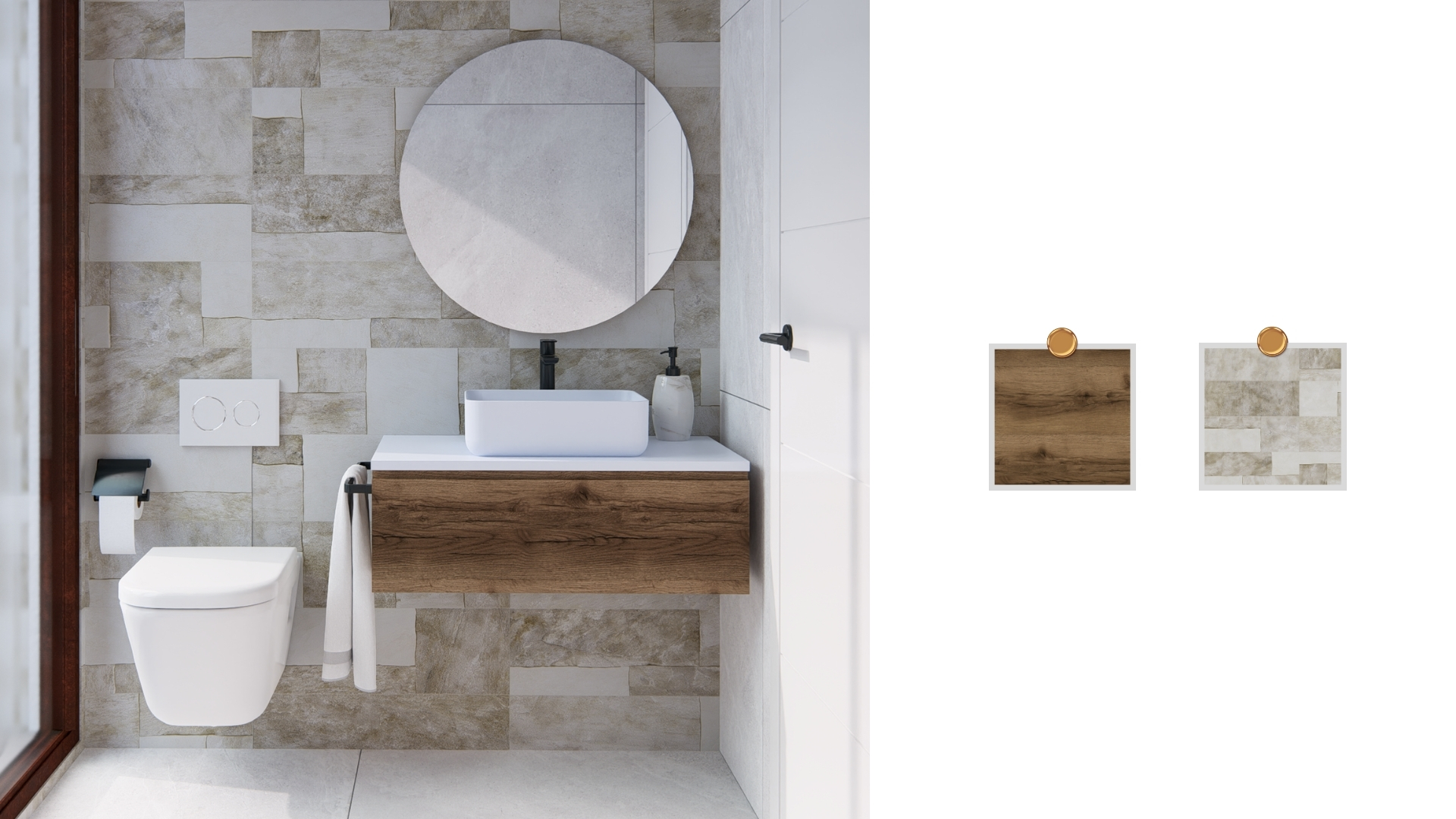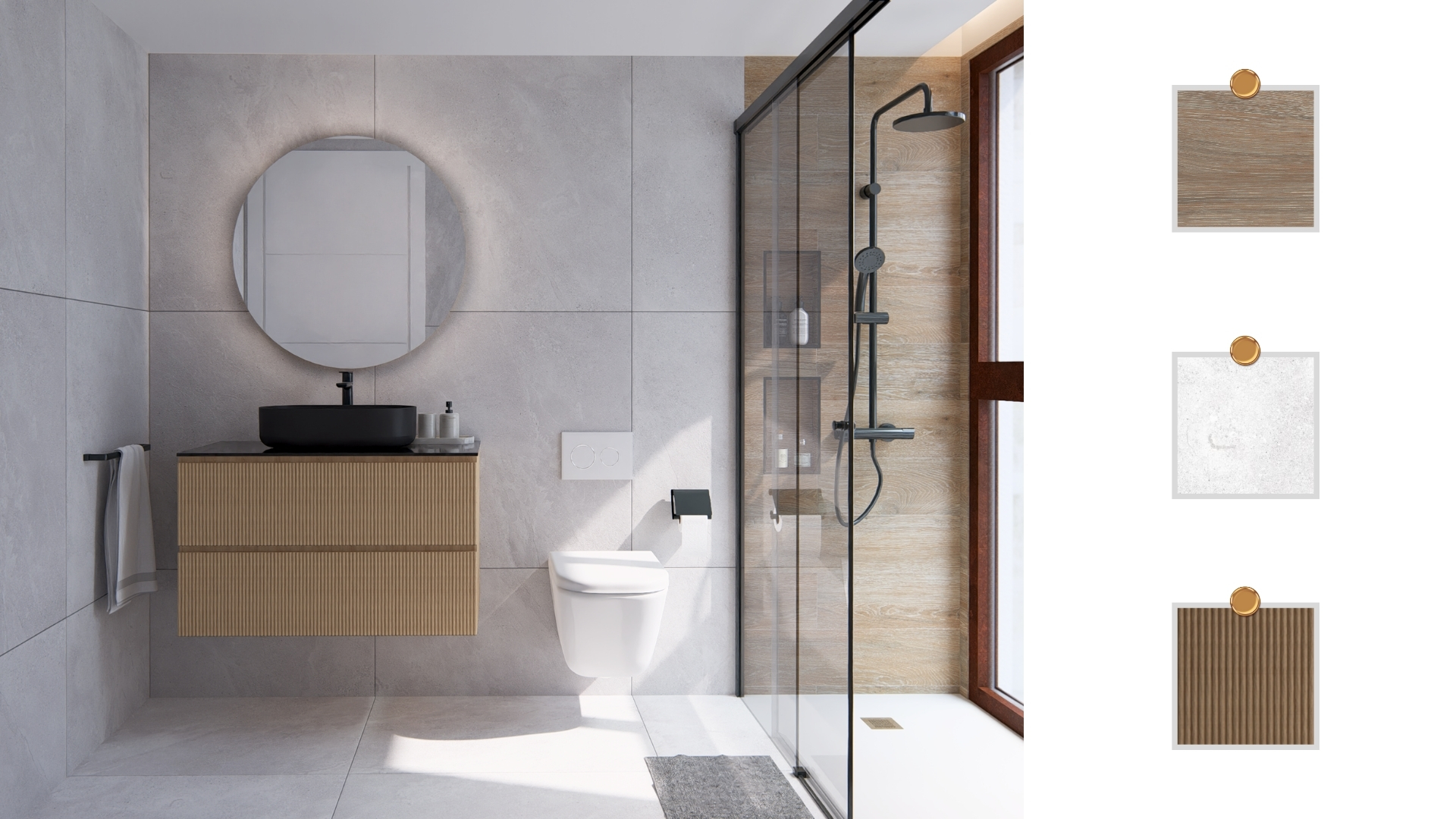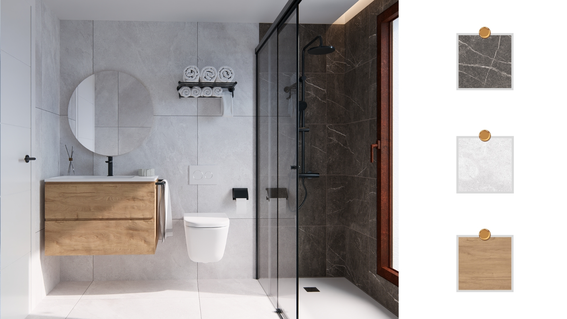 Cada baño de Marsala Villas II ha sido diseñado exclusivamente con una propuesta única de materiales, colores y texturas diferentes.