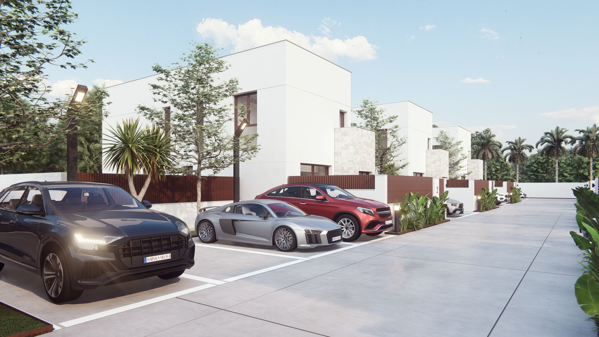 Marsala Villas II, además de las dos plazas de aparcamiento por villa, dispone de un área de cortesía en la zona común con 6 plazas para visitantes.