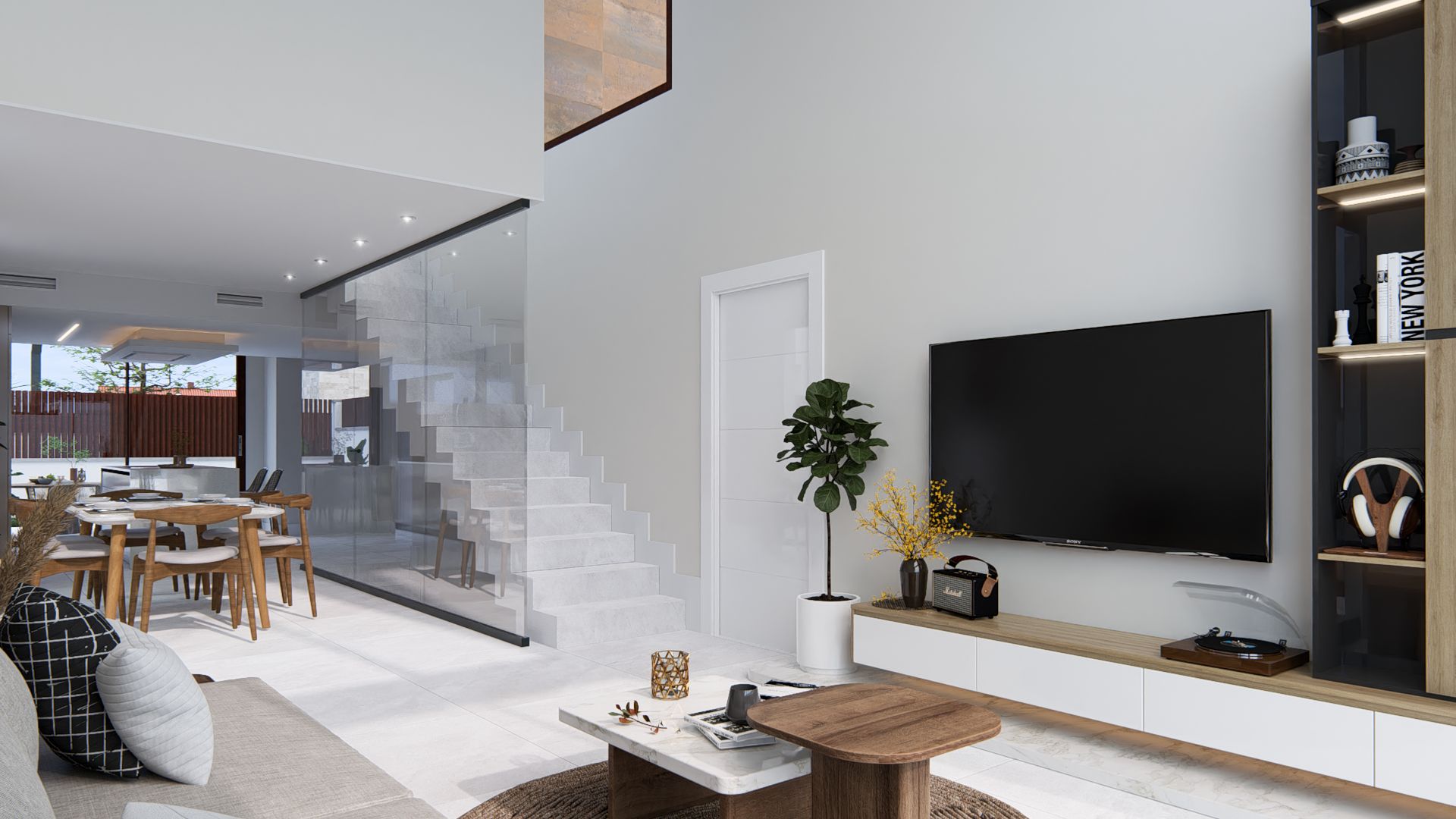 Un salón a doble altura hace que tu hogar se sienta más grande y acogedor, con grandes ventanales que lo inundan de luz natural. Este diseño se convierte en el corazón de tu casa. Además. permite una mejor circulación de aire, manteniendo tu hogar fresco y ventilado.