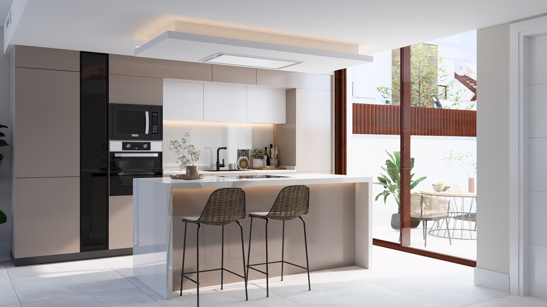 Además, está conectada con la terraza exterior, lo que permite la entrada de luz natural y la circulación de aire, invitándote a disfrutar cada día de un buen desayuno a cielo abierto.